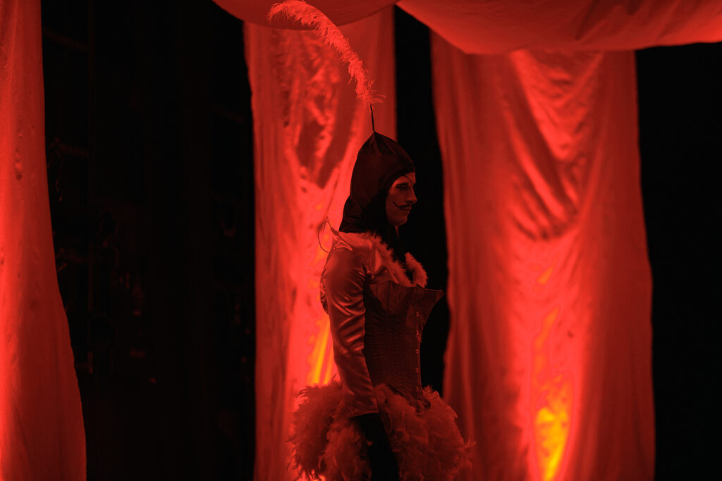 It follows Zeca as he enters what he believes to be a candy store, only to be met by three mysterious characters who continuously insult him until he’s broken. The audience follows Zeca into a hallucinating carrousel of emotions and blackmail until he finally confesses his sins.